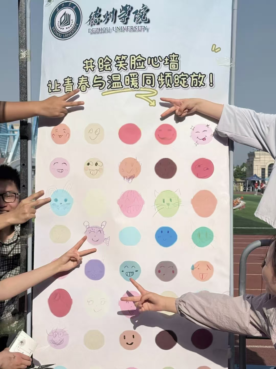 活动当日,现场气氛热烈非凡,三个精心设计的趣味环节依次展开,掀起阵阵欢乐浪潮。在“同心弹弹圈”环节中,同学们紧握系在弹弹圈的绳索,齐声喊着节奏口号,通过默契配合控制鼓面起伏,让小球在鼓面上欢快弹跳,不断挑战颠球新纪录。“巧艺扭趣,趣扭万象”环节则成为创意的舞台,彩色扭扭棒在同学们手中化身魔法材料,娇艳的花朵、灵动的蝴蝶、精致的手链等手工作品纷纷诞生。而“球跃星河挑战赛”更是将现场氛围推向高潮,同学们鼓足干劲,俯身将乒乓球依次吹过装满水的纸杯,有人不小心吹洒水花引得哄堂大笑,有人一气呵成完成挑战收获欢呼喝彩。游戏结束后,大家齐聚展板前,拿起画笔共同创作,用缤纷色彩勾勒出一张张灿烂笑脸,分享活动中的趣事与感动,将美好瞬间永久定格。
