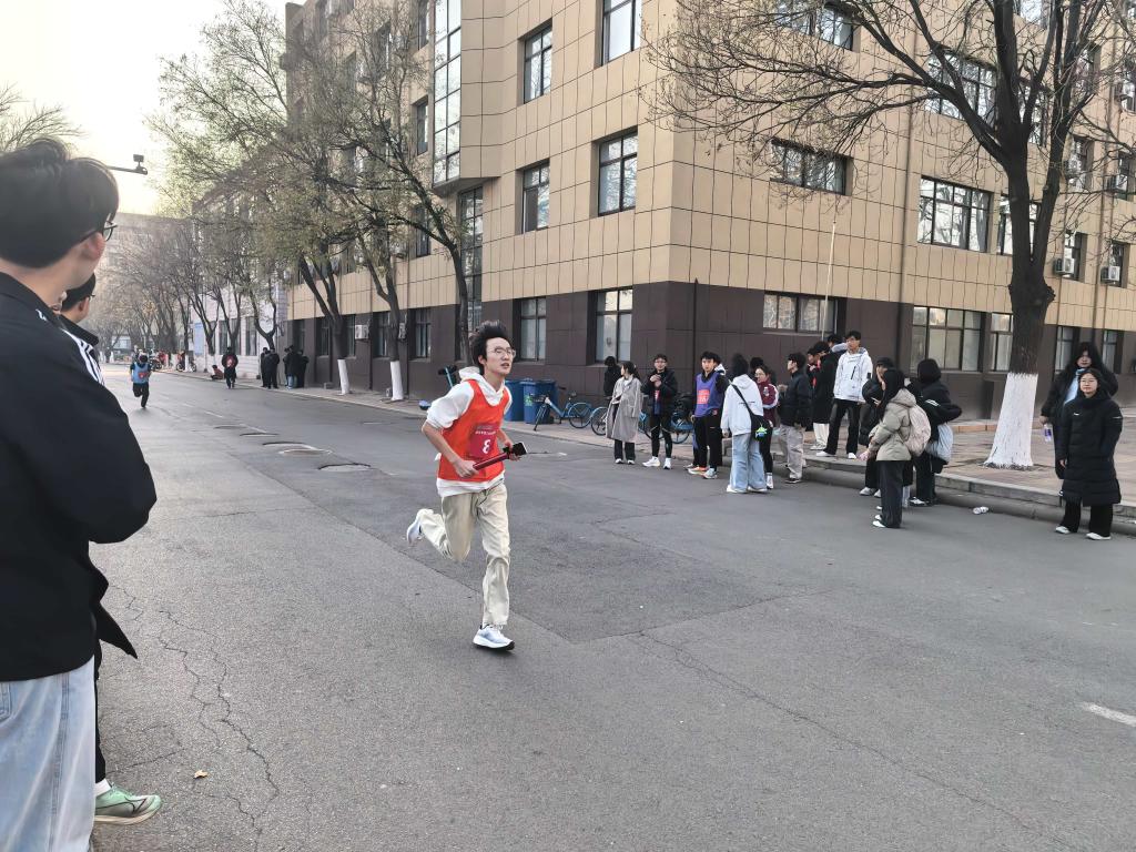 赛事以“强体魄、展风采、凝团结”为主题,设计了周密的路线,配备了专业裁判与医疗团队,全面夯实安全保障,以推动比赛平稳、顺利进行。发令枪响,首棒选手应声冲出起跑线,队员们接力奋进,以速度诠释拼搏,用协作凝聚合力。跑道两旁,师生观众的呐喊助威声此起彼伏,为选手点燃了全力冲刺的斗志,生动彰显出文院学子昂扬向上、奋勇争先的精神风貌。参赛学生纷纷表示,通过本次比赛体会到坚持的意义与协作的价值,未来将以更饱满的热情、更昂扬的姿态投入学习生活。