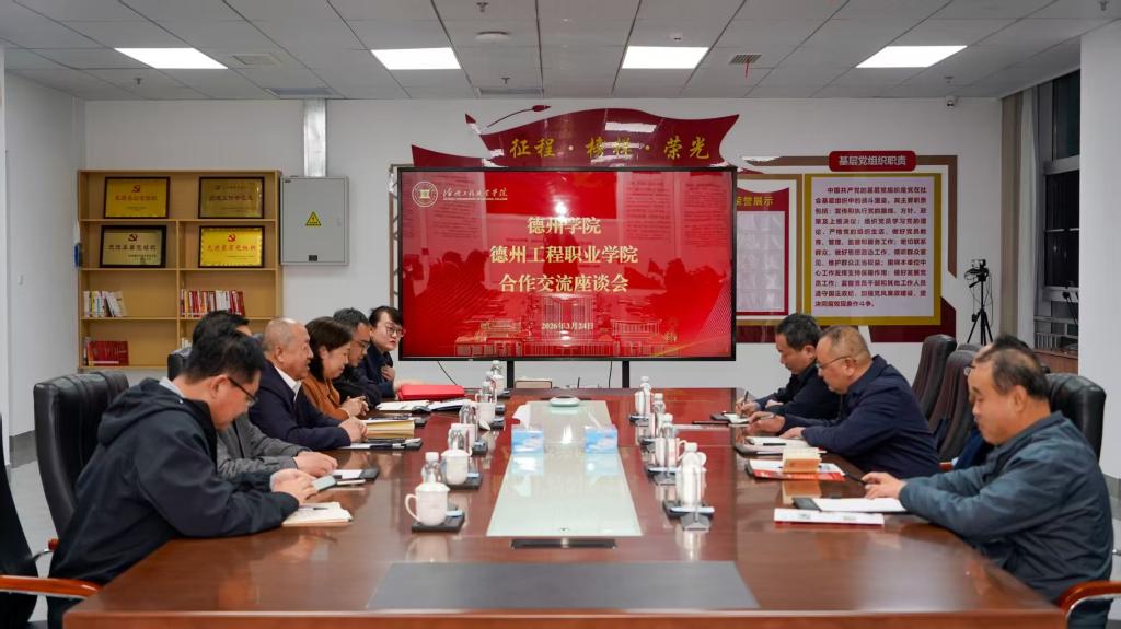 交流期间,我院一行与其他学院代表共同观看德州工程职业学院宣传片,全面了解该校办学理念、专业布局、产教融合成效及长远发展规划。德州工程职业学院党委副书记、副校长赵红军详细介绍学校办学基本情况,围绕学科建设、师资培育、人才培养模式、科研服务地方等方面进行全面阐释,为校际精准合作奠定坚实基础。