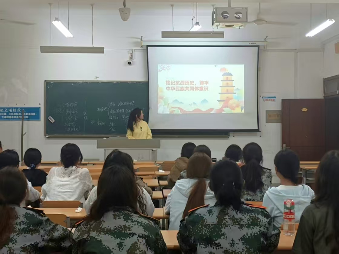 活动在庄严的国歌声中开始,学生代表朗诵了抗战家书和爱国诗篇,字字泣血、声声铿锵,带领全场师生穿越历史烟云,感受那段烽火岁月中中华儿女的家国情怀与责任担当。活动现场播放珍贵的历史影像资料,一幕幕震撼人心的画面,让师生们深受触动。在交流发言中,同学们纷纷表示,历史是最好的教科书,也是最好的清醒剂。作为新时代青年,必须继承和发扬先辈们的优良传统,将强烈的爱国热情转化为刻苦学习、奋发图强的实际行动,铸牢中华民族共同体意识,为实现中华民族的伟大复兴贡献青春力量。