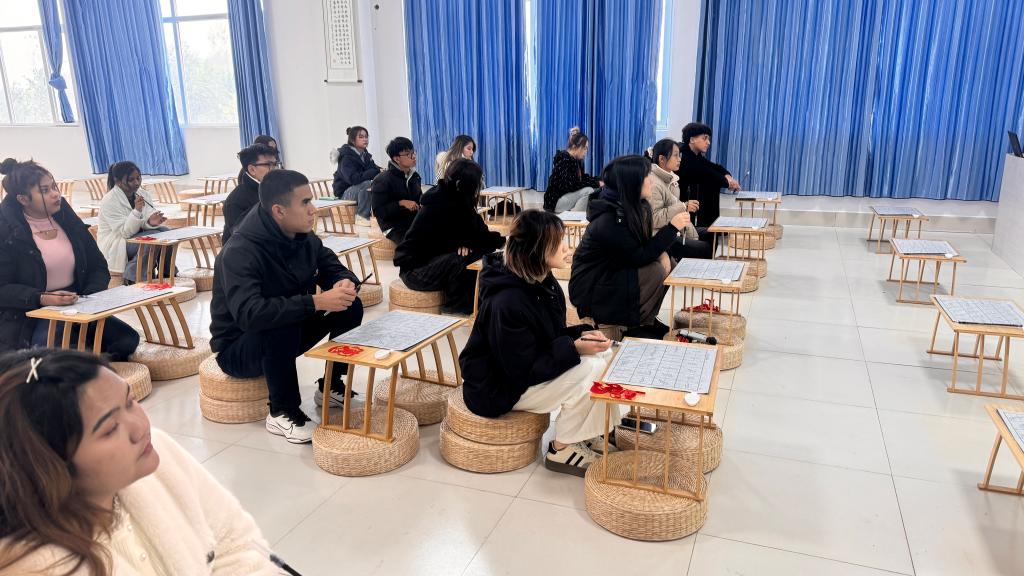活动现场,研学基地的指导老师向留学生讲解各项技艺的历史渊源与文化内涵,随后分区域展开实践教学:书法体验区老师从握笔、运笔技巧切入示范汉字书写要领,展现汉字韵律;在剪纸体验区,老师既展示优秀经典作品,又分析折叠、裁剪技巧,指导留学生们完成各具特色的作品,体会传统技艺的细致;射箭体验区则从传统射箭的礼仪、站姿与发力方法开始,阐释“射以观德”的理念,让留学生们在从生疏到熟练的过程中感受到运动乐趣与文化魅力。