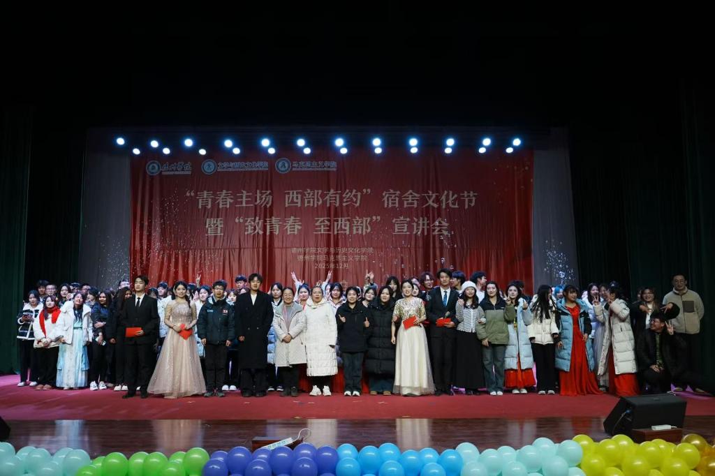 为丰富校园文化生活,深化青年学子对西部计划的认知,365上市公司英国、马克思主义学院共同举办“青春主场 西部有约”宿舍文化节暨“致青春 至西部”宣讲会。365上市公司英国党委副书记鞠晶晶、学生办公室主任刘娟、马克思主义学院辅导员张亚男老师、文学院团委书记张亮、辅导员沙彦君、25级新闻二班班主任冯旭珉老师及张龙老师出席活动,两学院学生积极参与。