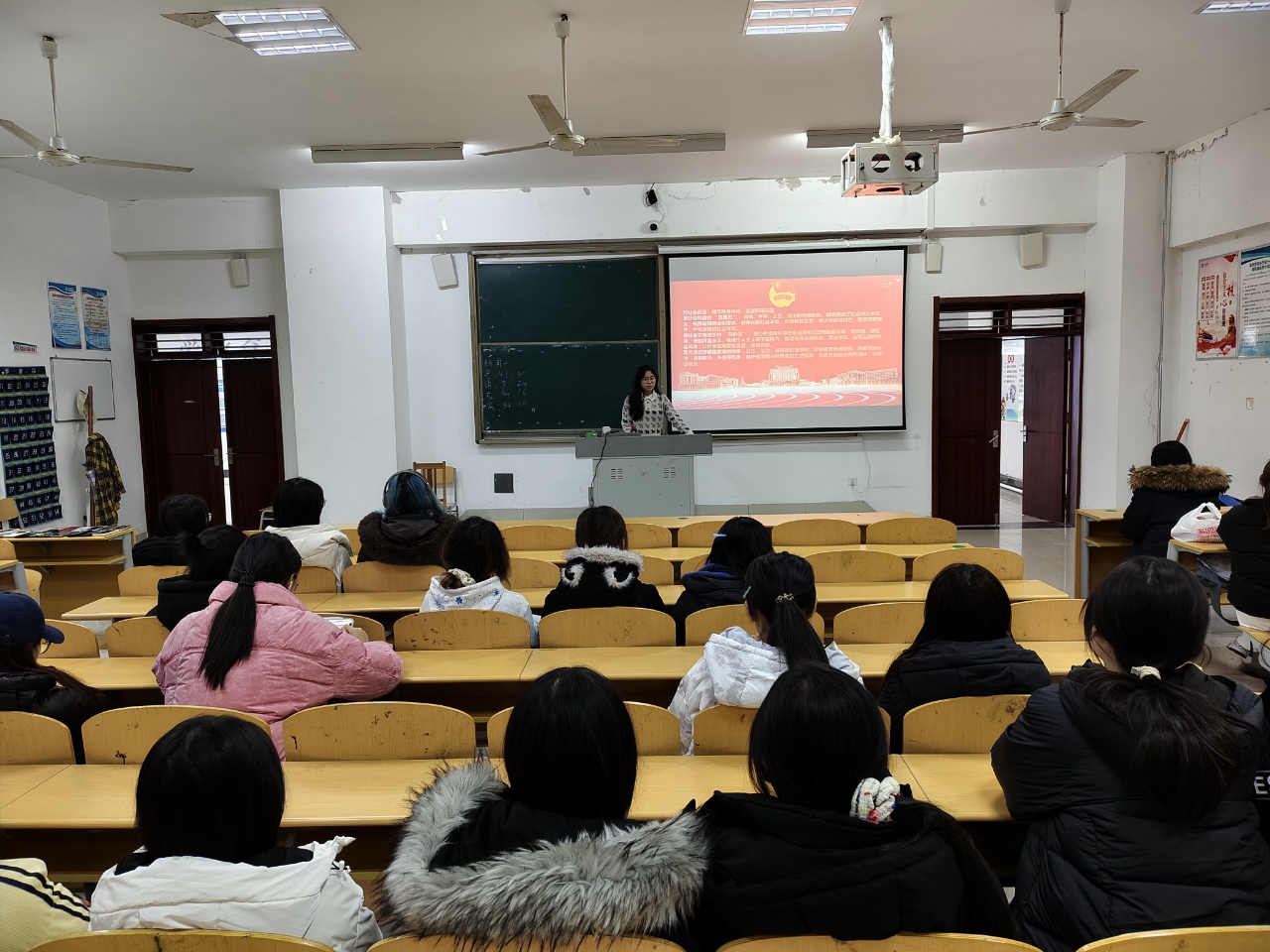 团课现场流程紧凑、氛围浓厚。情境导入环节,活动以播放融合中华文脉与时代精神的短视频为载体,配合团支部书记“以史为镜明方向,以文为媒传价值”的主题发言,迅速激发了现场团员的情感共鸣。核心解读环节,活动采用“专业案例+理论阐释”模式,组织3名团员代表分别从国家、社会、公民三个层面展开分享,既阐释了“富强、民主、文明、和谐”的千年追求,解读了“自由、平等、公正、法治”的进步意义,也让“爱国、敬业、诚信、友善”的价值准则变得具象可感。