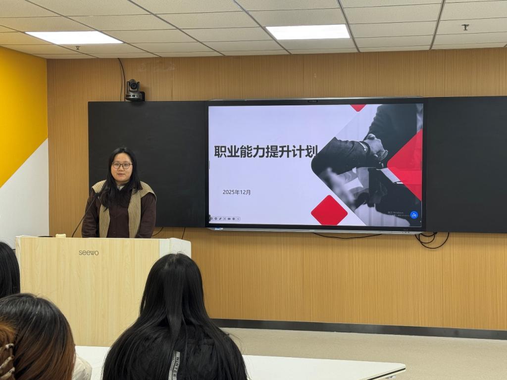 活动现场,指导老师以“职业能力提升计划”为核心,结合文学与历史类专业的就业方向,系统梳理了职场必备的通用能力与专业能力体系。老师从沟通表达、公文写作、团队协作、问题解决等通用能力入手,通过案例分析指出学生在能力培养中存在的短板,并分享了针对性的提升方法,如通过校园实践锻炼沟通能力、借助专业课程强化文字写作功底等。针对专业能力提升,老师结合文化创意、教育培训、文博档案等领域的岗位要求,讲解了专业知识与职场技能的融合技巧,指导学生将历史研究、文学创作等专业能力转化为职场竞争力。