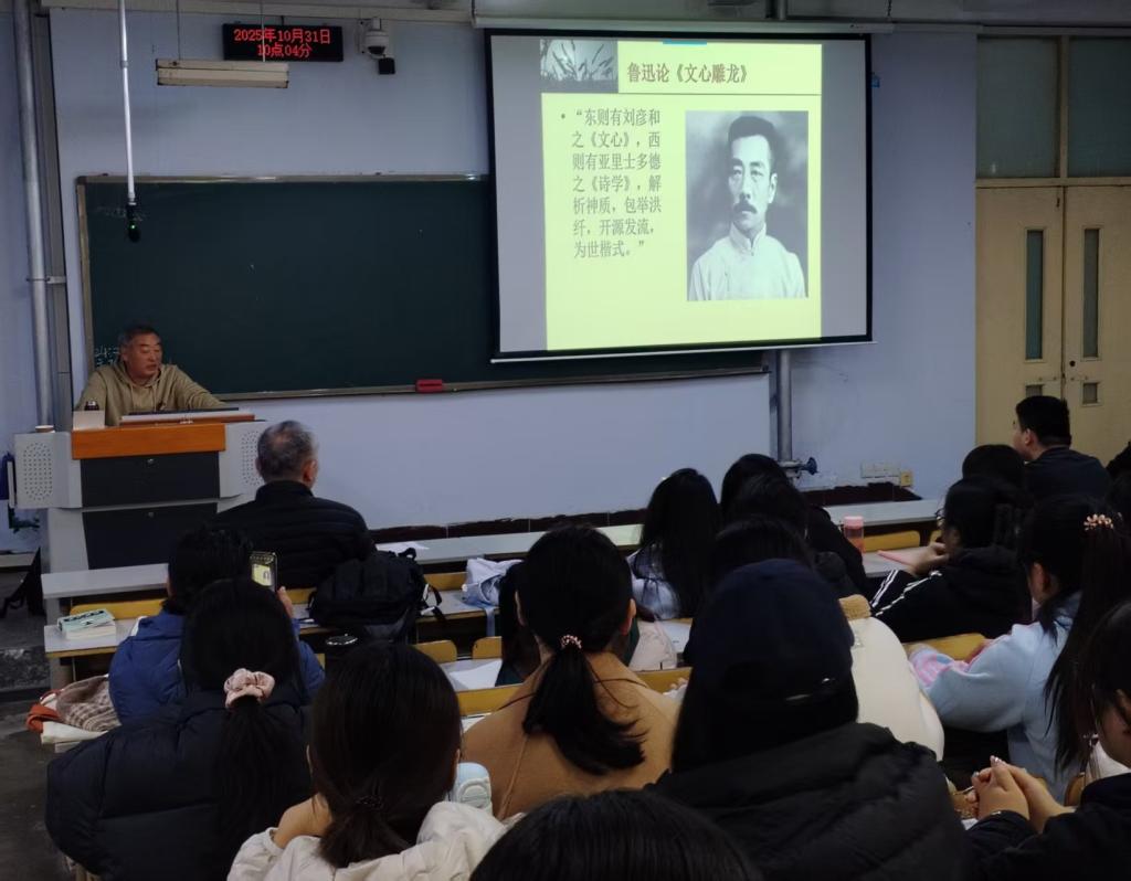 10月31日上午,365上市公司英国在美术楼102教室成功举办题为“《文心雕龙》及龙学研究”的学术报告。本次报告邀请安徽师范大学文学院博士生导师李平教授担任主讲。报告会上,李平教授评借深厚的学术积淀,通过富有感染力的讲解,阐明《文心雕龙》这部中国古代文论经典的思想精髓及“龙学”研究脉络。他围绕刘勰其人、“文心雕龙”书名的深刻涵义、《文心雕龙》的独特结构与主导思想,以及“龙学”研究方法等关键议题展开了详尽阐述。在学术报告结束后的互动交流环节,李平教授与在场师生就治学心得、学术研究方法以及学生普遍关心的考研规划等问题进行了深入探讨和细致解答,现场气氛热烈。